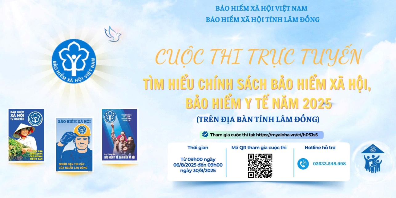 Cuộc thi trực tuyến “Tìm hiểu chính sách bảo hiểm xã hội, bảo hiểm y tế năm 2025” được tổ chức theo hình thức trực tuyến, diễn ra trong thời gian 25 ngày, bắt đầu từ 9h00 ngày 6/8/2025 và kết thúc vào 9h00 ngày 30/8/2025.