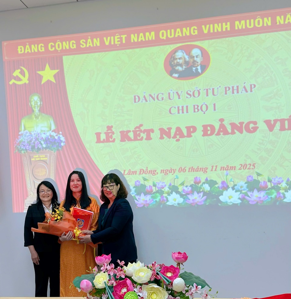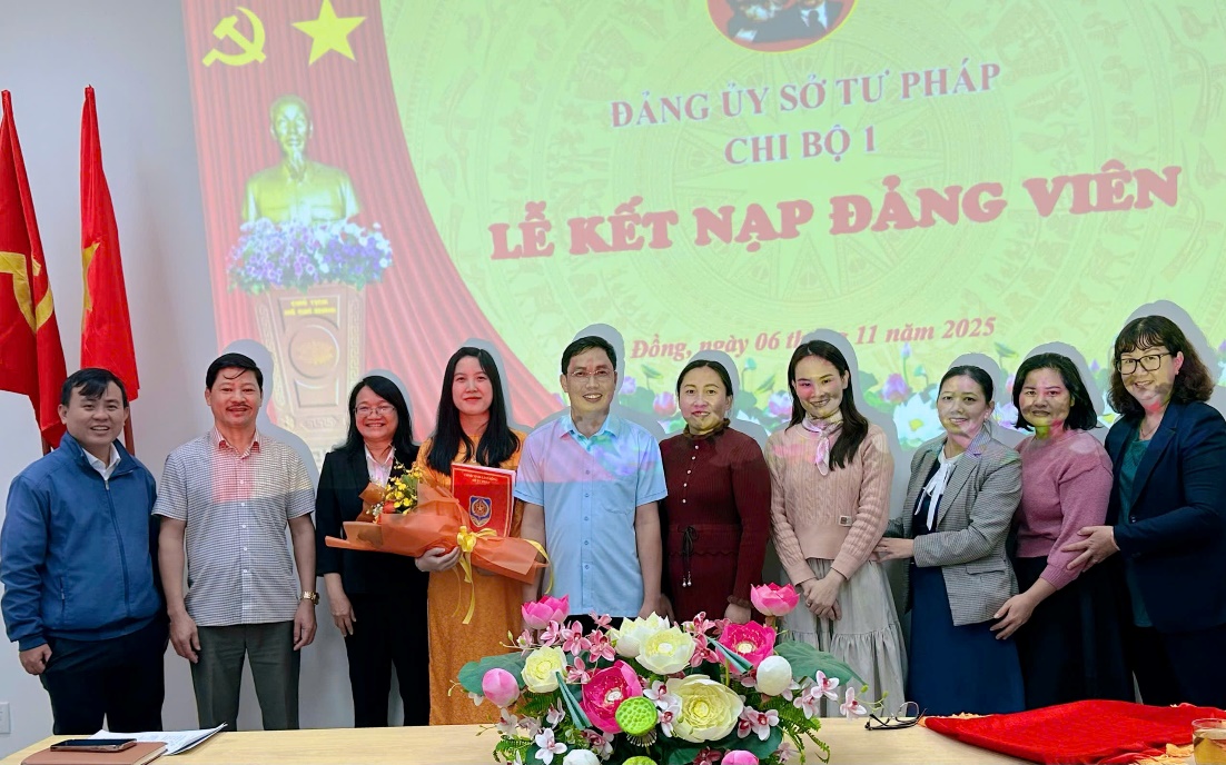 Ngày 06/11/2025, Chi bộ 1 đã tiến hành Lễ kết nạp Đảng viên mới cho quần chúng ưu tú Trần Thanh Bình. Đến dự buổi lễ có đồng chí Phạm Thị Trà My, Tỉnh ủy viên, Bí thư Đảng ủy Sở Tư pháp, Bí thư Chi bộ 1 cùng toàn thể Đảng viên trong Chi bộ 1.
