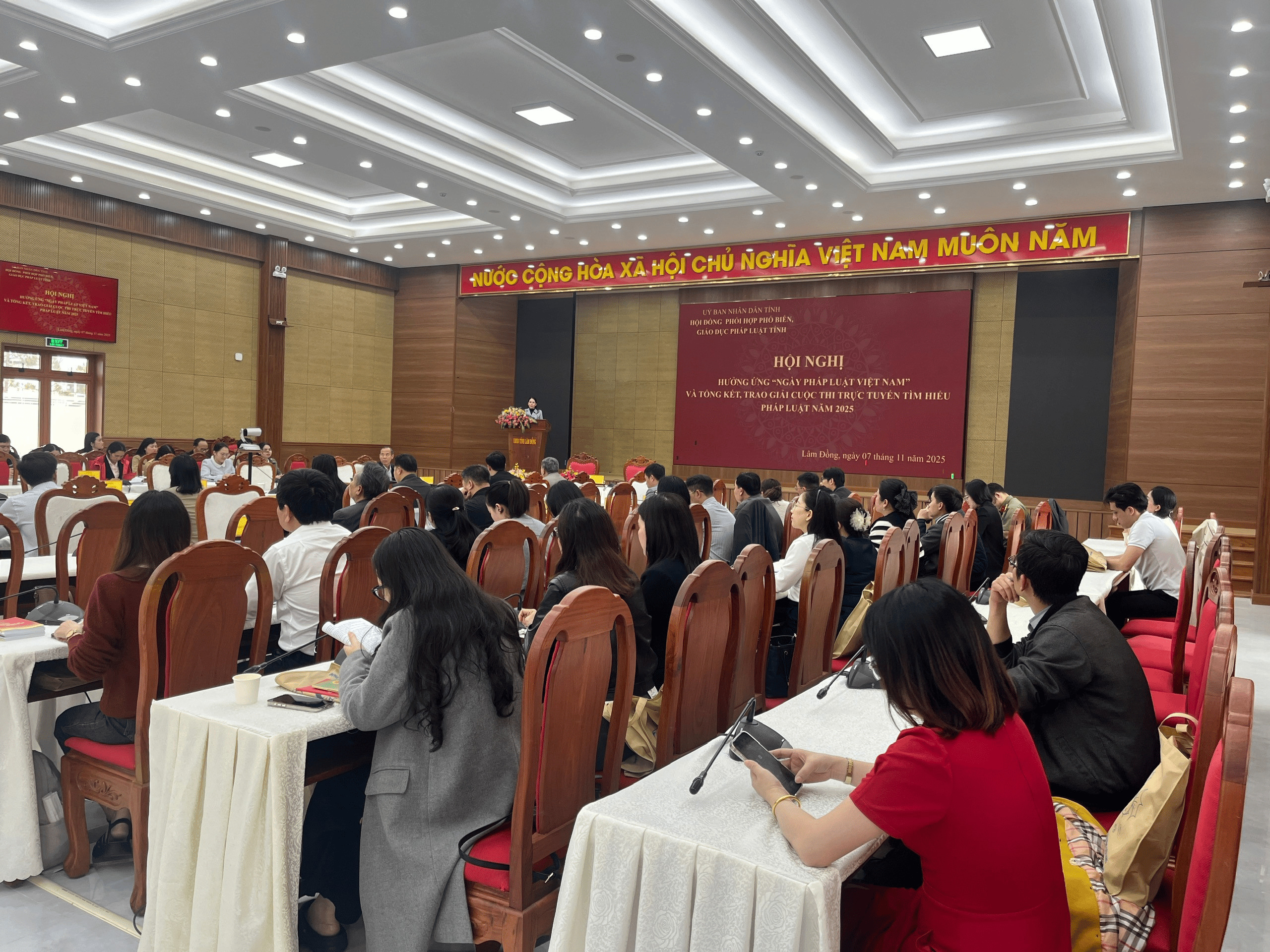Chiều ngày 07/11/2025 Hội đồng Phối hợp phổ biến, giáo dục pháp luật (PBGDPL) tỉnh Lâm Đồng tổ chức Hội nghị hưởng ứng “Ngày Pháp luật Việt Nam” năm 2025 kết hợp Tổng kết và trao giải Cuộc thi trực tuyến tìm hiểu pháp luật.